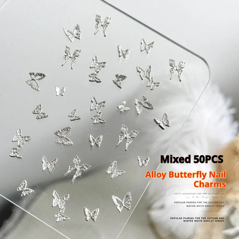 Alloy Butterfly Nail Charms – Mixed 50 PCS