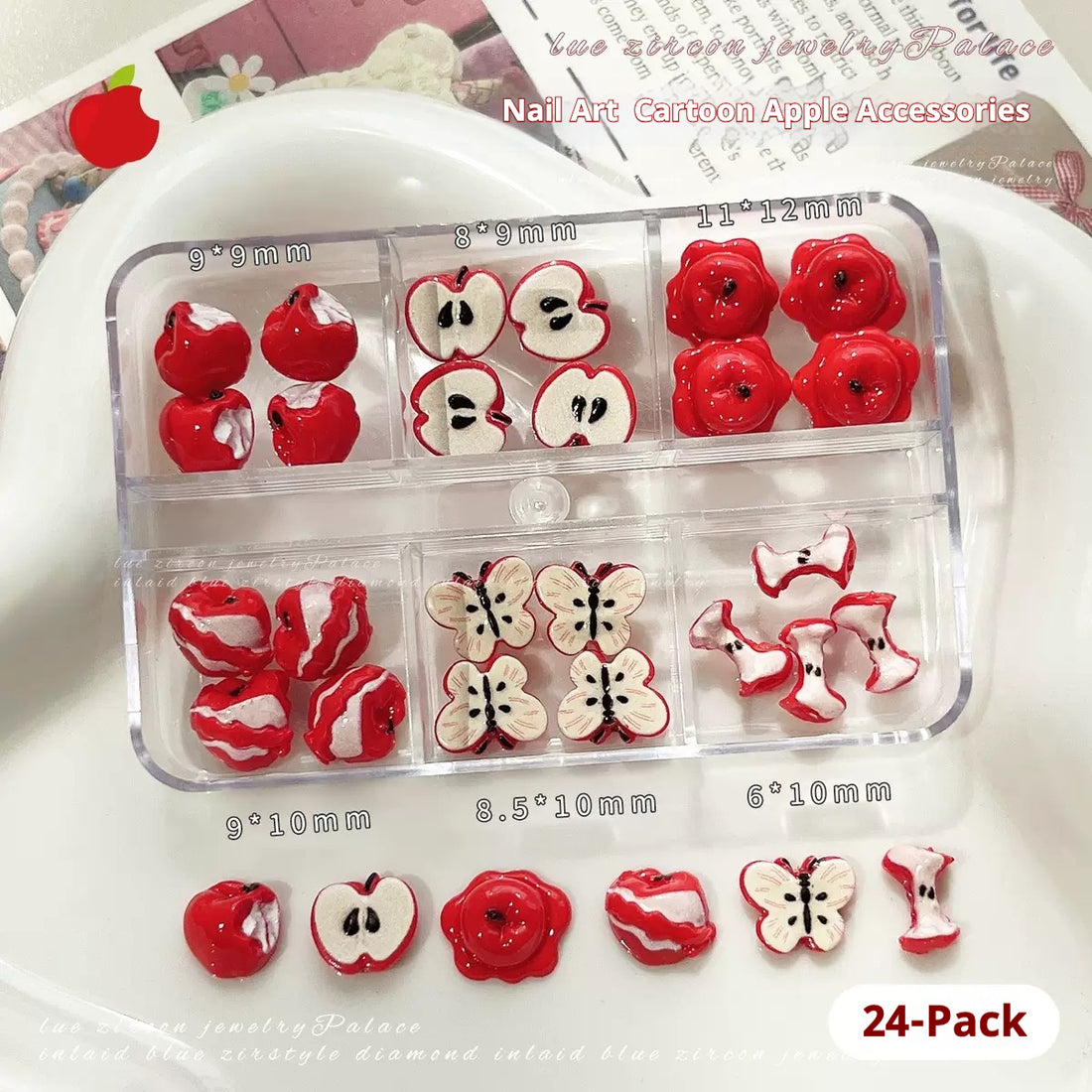 Apple Nail Charms Organizer Set (6-Grid Box)