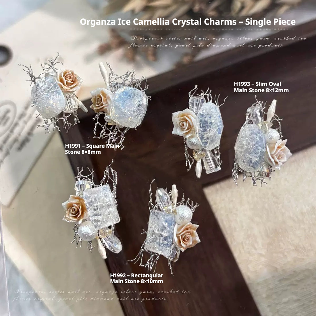 Organza Ice Camellia Crystal Charms – Single Piece