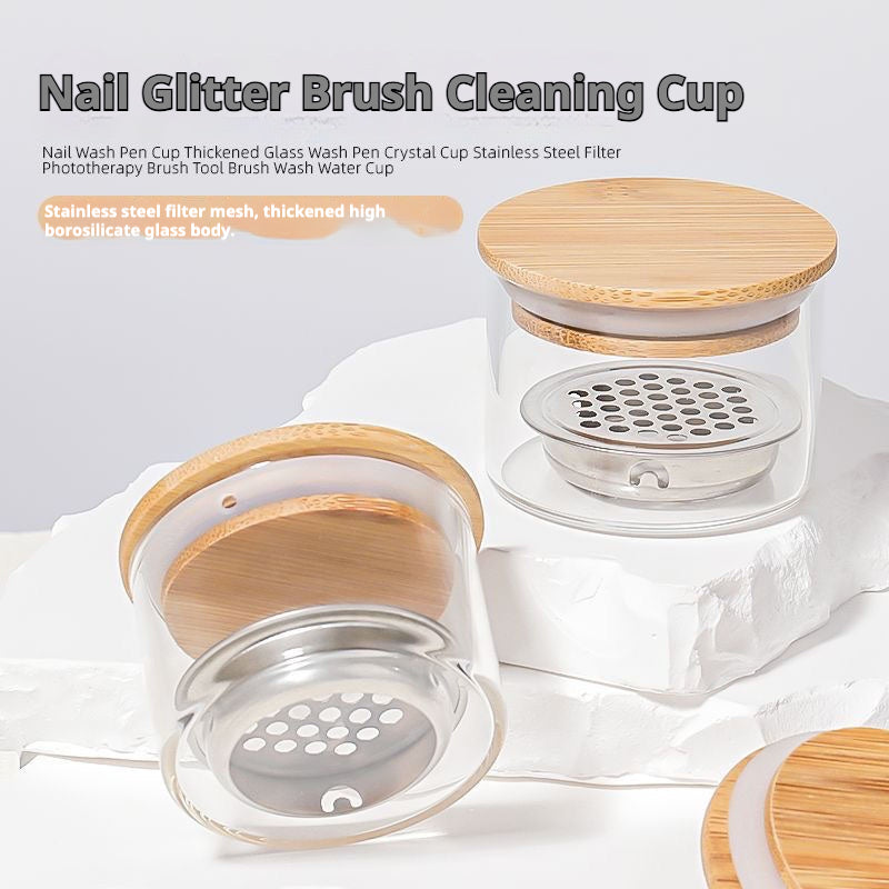 Nail Glitter Brush Cleaning Cup – With Stainless Steel Filter
