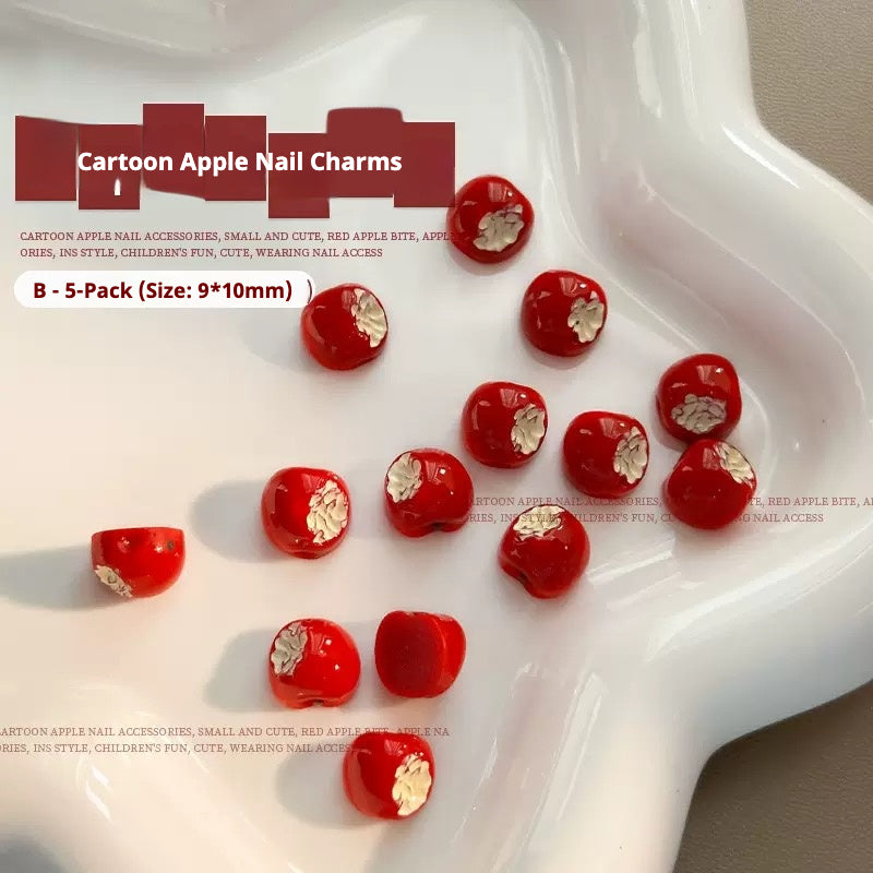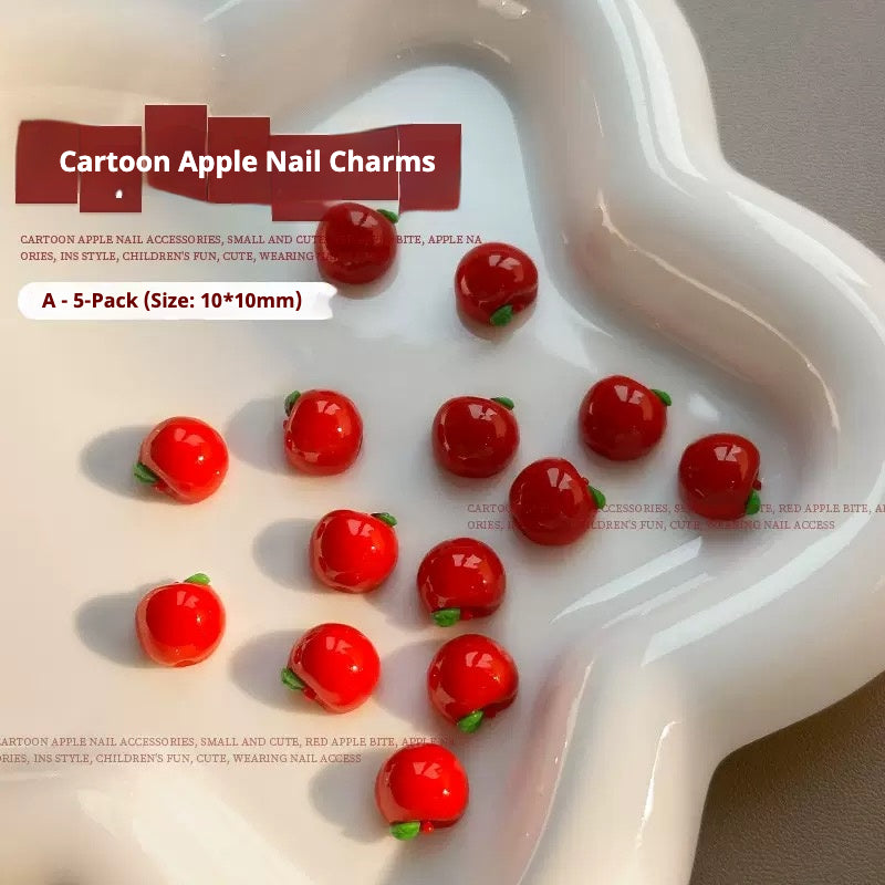 What's included: Cartoon Apple Nail Charms – 5 pcs