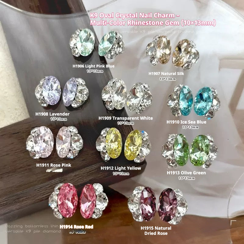 K9 Oval Crystal Nail Charm – Multi-Color Rhinestone Gem (10×13mm)