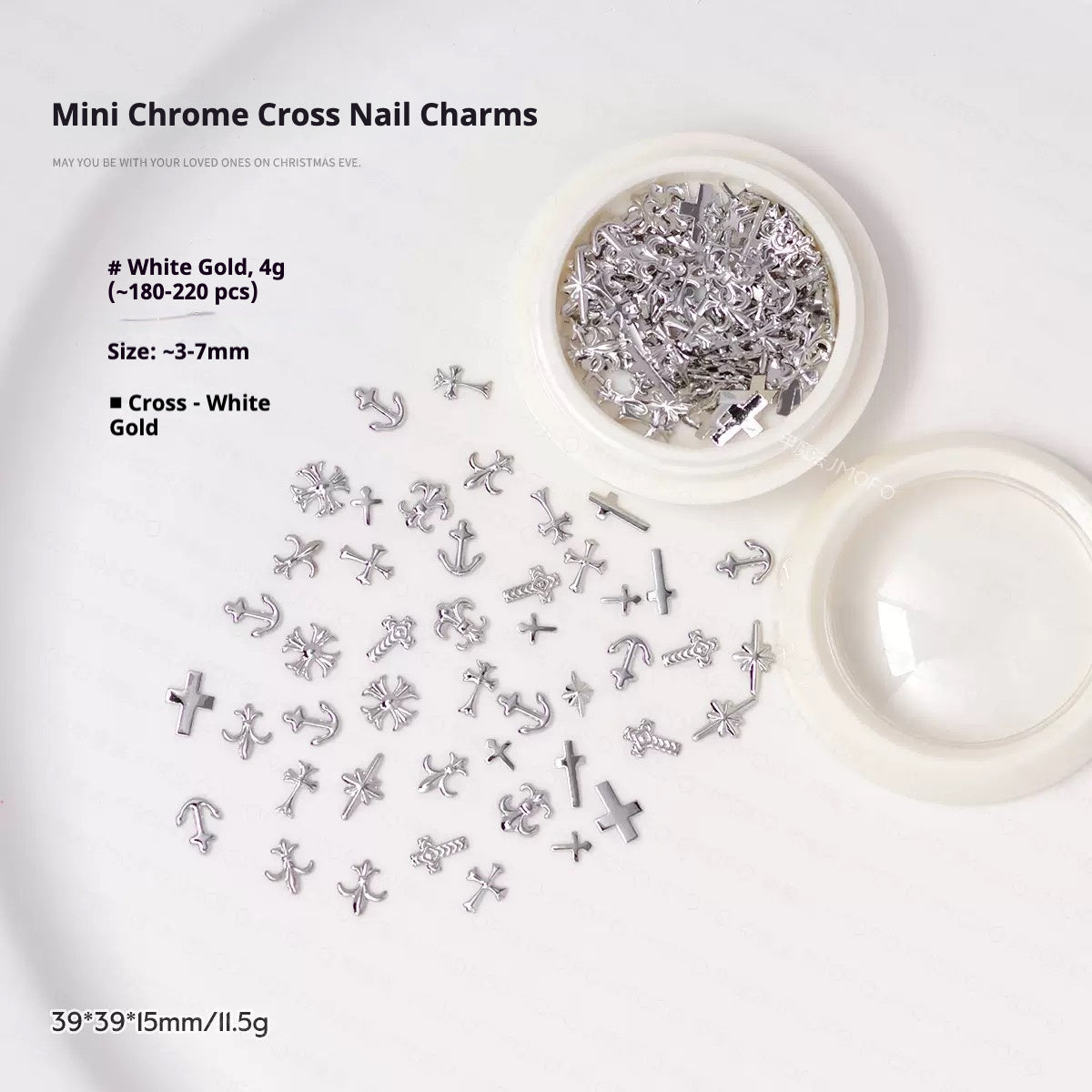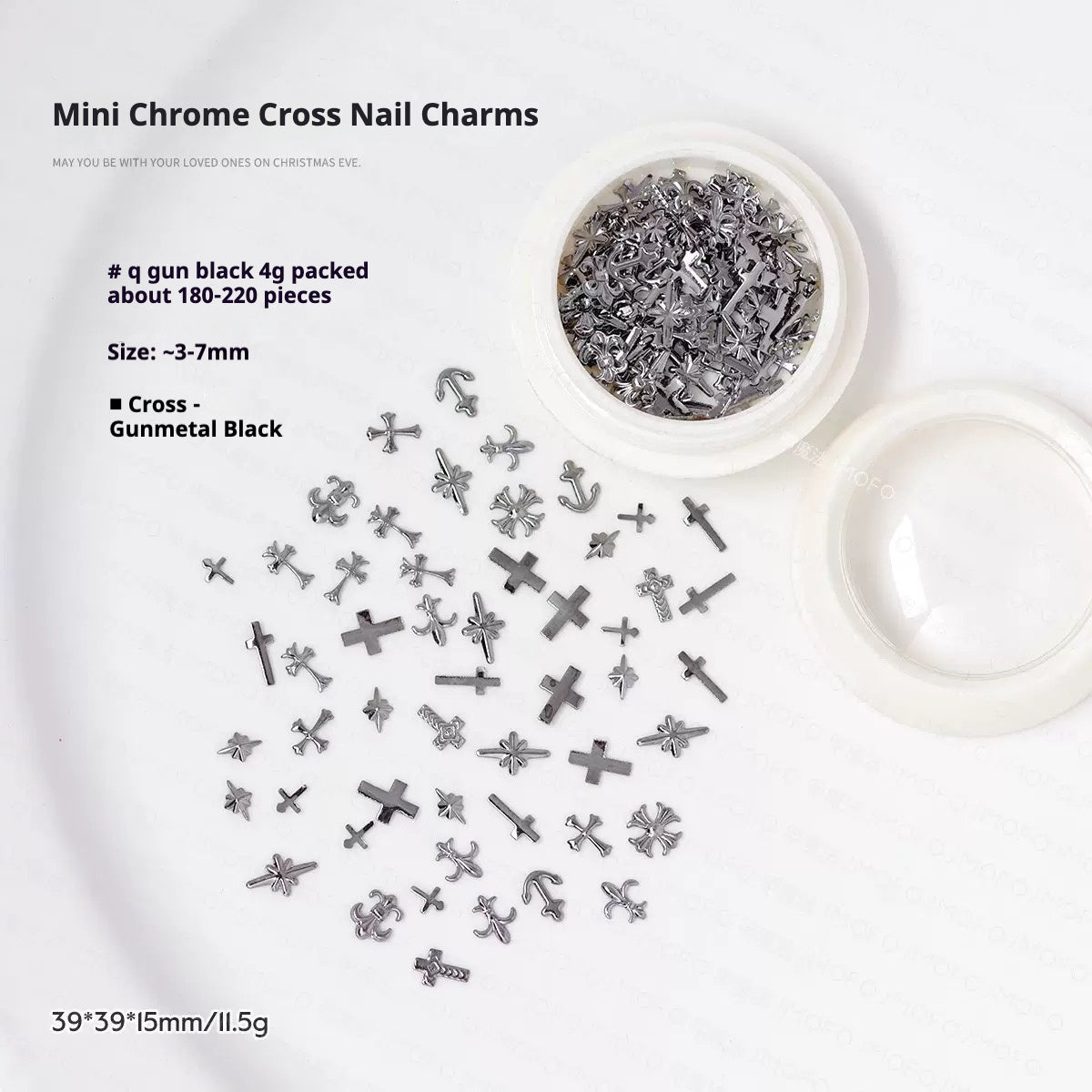 Mini Chrome Cross Nail Charms (Gunmetal / Silver, 3–7mm) - 200pcs