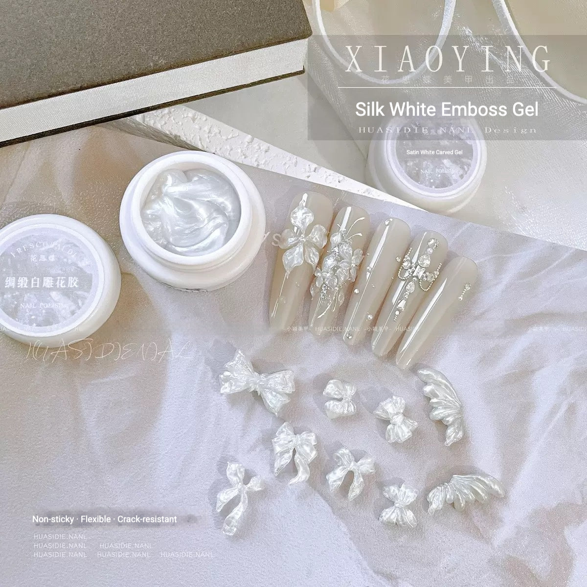 A soft silk-white sculpting gel designed for elegant 3D nail art.